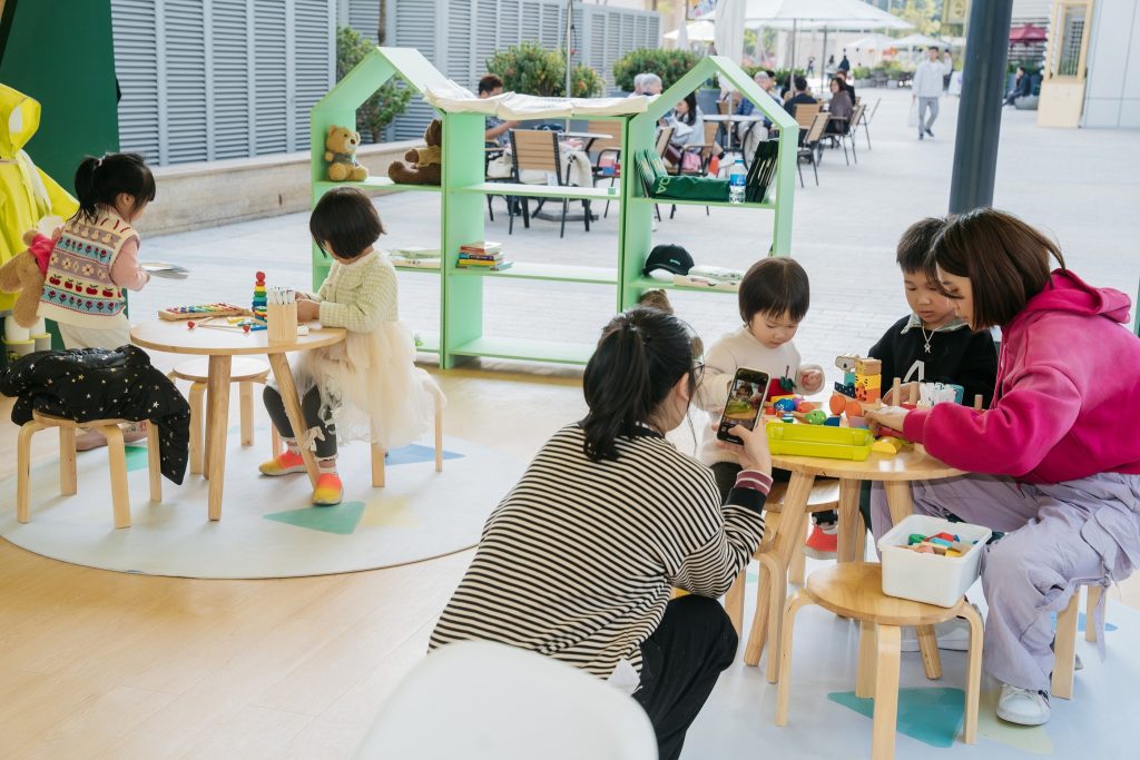 - Không gian sáng tạo cho bé: Một khu vực riêng được thiết kế dành cho các em nhỏ với hoạt động vẽ tranh, tô màu và tạo hình bóng bay nghệ thuật để gắn kết cả gia đình trong ngày cuối tuần